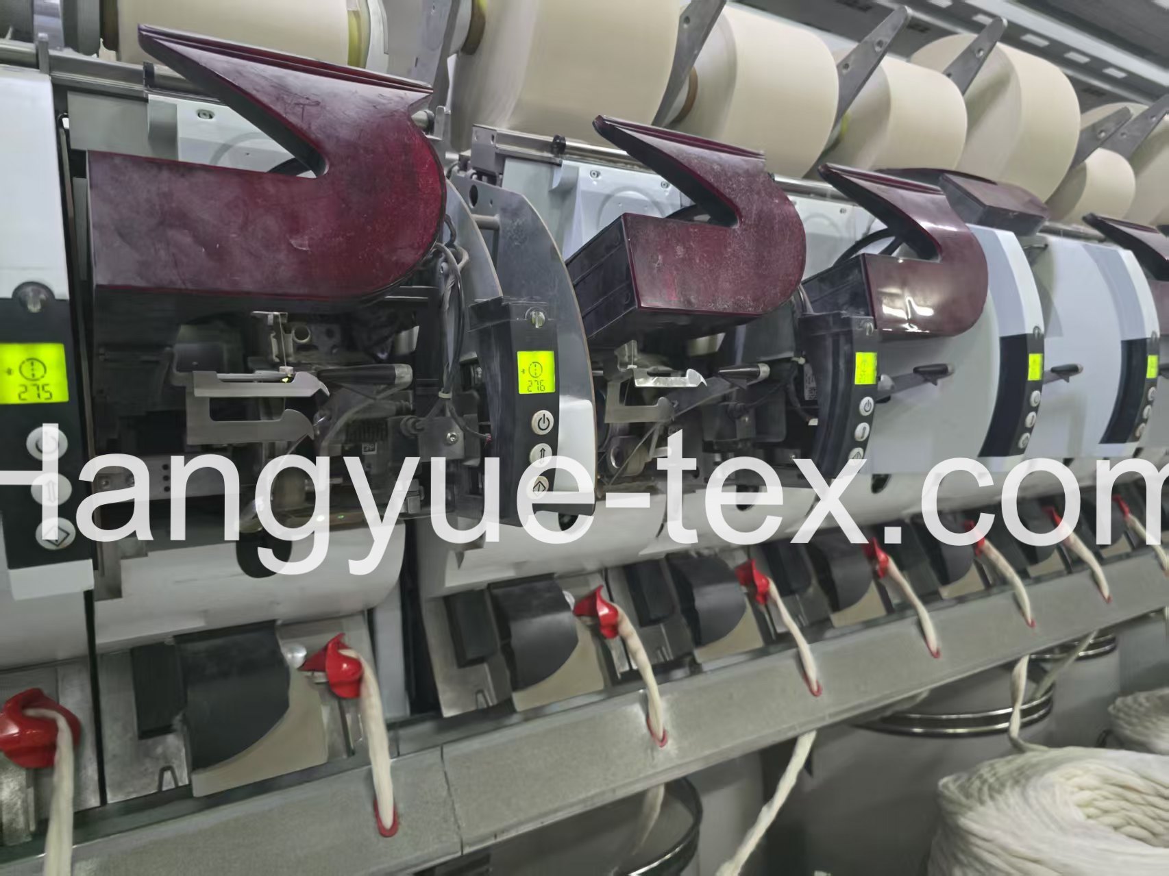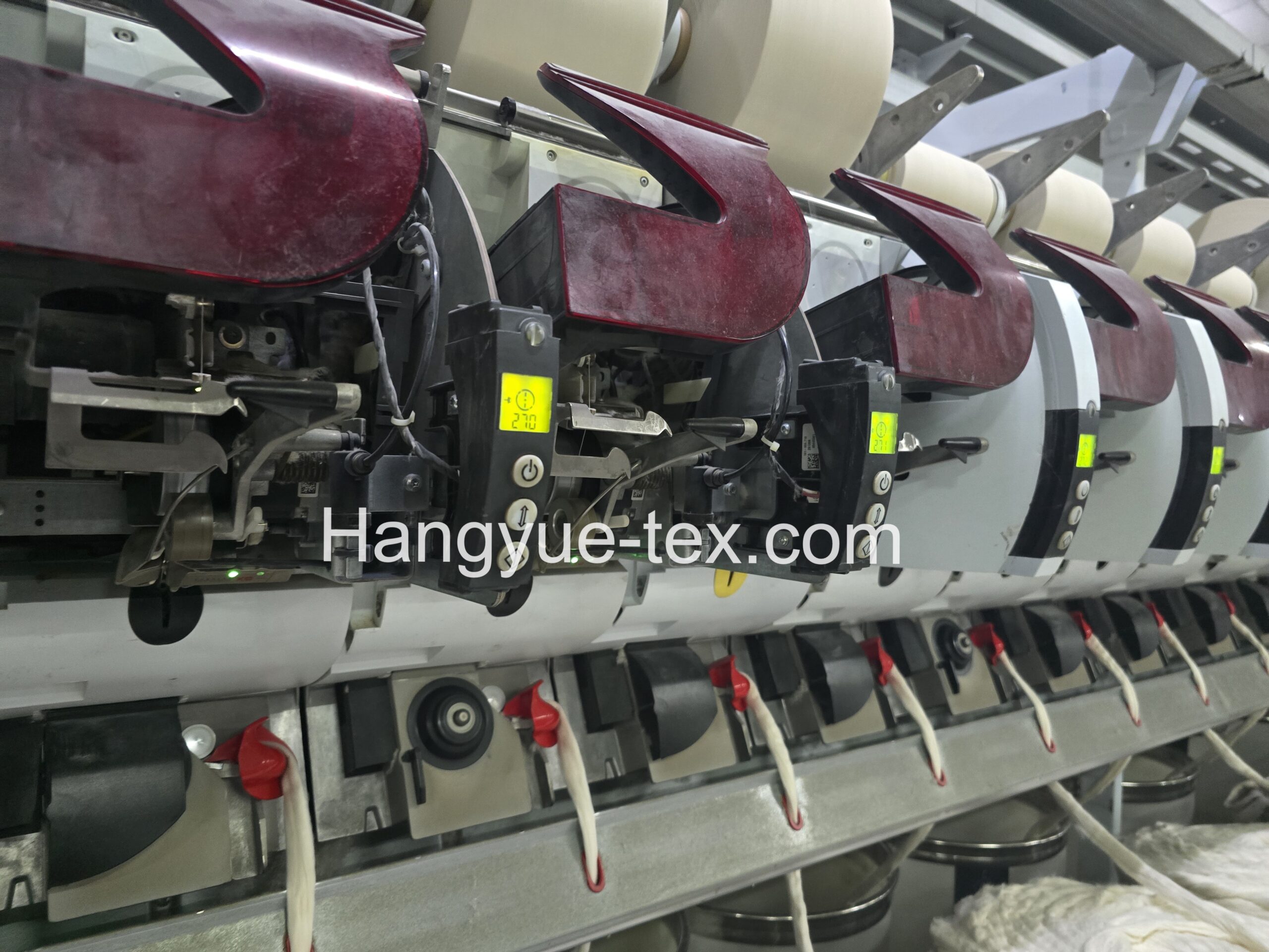 The machine supports three different yarn varieties within the same platform, allowing flexible production planning. It is equipped with a 28 mm rotor diameter and uses a 174 opening roller for fiber opening and preparation. The configuration is suitable for processing multiple yarn types under stable operating conditions.