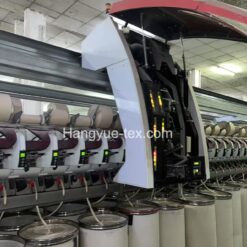 Schlafhorst Autocoro 9 Open-End Rotor Spinning Machine (2018) is configured with 480 rotor positions for OE yarn spinning. The machine uses G628BD rotors, 36 rotor cups, and a KSS-A opening unit with B174DN opening rollers. It is equipped with Corolab XQ original yarn clearers and A28SL doffing disks. The system includes 4 robots and 12 piecing units synchronized with the yarn clearer. The machine is reported in running condition and located in Jiangsu, China.
