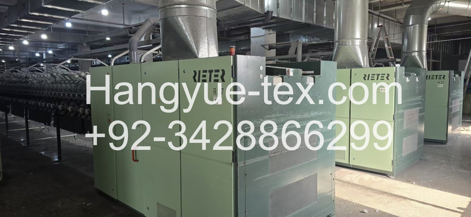 The machines are equipped with Rieter yarn clearers for yarn monitoring and quality control and utilize an inverter-driven system for controlled machine operation. The configuration supports stable spinning performance and integration into modern open-end spinning lines.