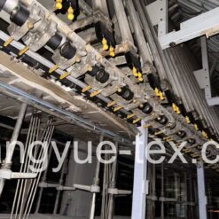 The FK6-V1000 DTY Draw Texturizing Machine is engineered for high-volume, high-speed production of Draw Textured Yarn, specializing in the 75D to 300D range. This unit is configured with 240 positions (spindles) across 10 sections, offering a maximum mechanical speed of 1200 m/min. The FK6-V1000 is renowned for its temperature consistency, utilizing a 2.0m Dowtherm primary heater and a 1.46m secondary heater to ensure precise yarn shrinkage and crimp stability. Between the heating zones, a 1.10m cooling rail provides efficient heat dissipation, which is critical for maintaining yarn tenacity at high speeds.