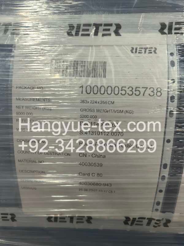 Rieter C80 Carding Line with Blowroom (2023) consists of 12 carding machines integrated with a complete blowroom system. The line includes 1 unit A12 cotton picker, 1 unit B15 opening machine, 2 units B76 multi-bin machines, and 2 units A79 cotton cleaners for fiber preparation. The C80 carding machines are designed for high-output carding with consistent sliver formation. The system supports cotton processing from bale opening to carding. Equipment is supplied as 12 complete sets and located in China.